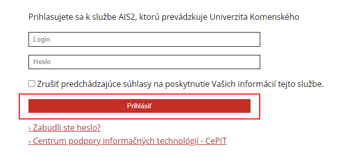 • Klikneš na tento link (https://ais2.uniba.sk/)